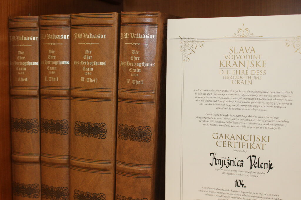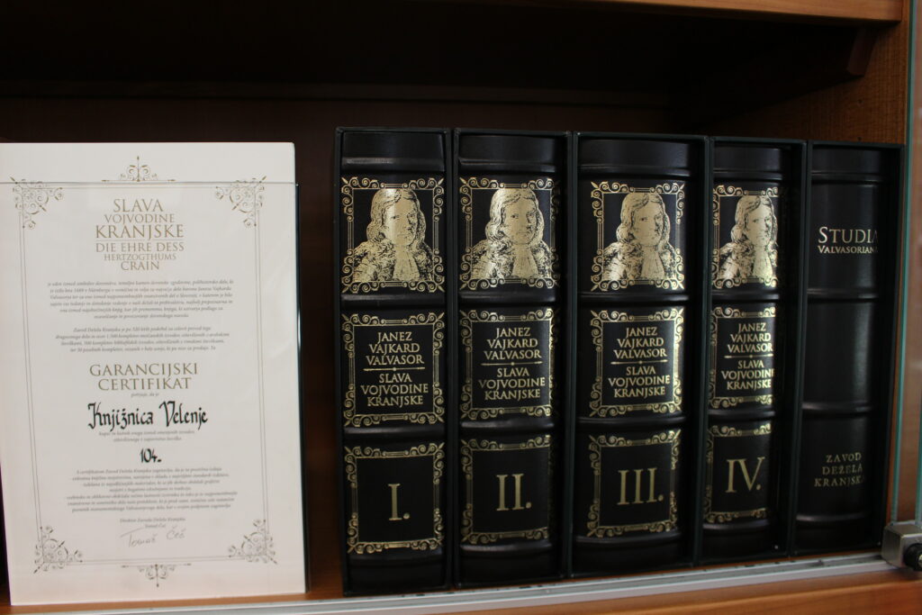Knjižnica Velenje poleg faksimilirane zbirke Valvasorjevih grafik vključuje še številne druge vrednostne tiske. Med njimi je za izpostaviti izjemna in prestižna izdaja o ključnih mejnikih slovenskega knjižnega jezika, književnosti ter kulture Stati inu obstati, kopijo Dalmatinove Biblije iz protestantske dobe, izdaje del slovenskih protestantskih piscev, med drugim Trubarja, Bohoriča in ostalih piscev slovenskega protestantizma, nato faksimilirane izdaje Prešernovih del, nemške in slovenske inačice starih Biblij in številne druge vrednostne tiske.